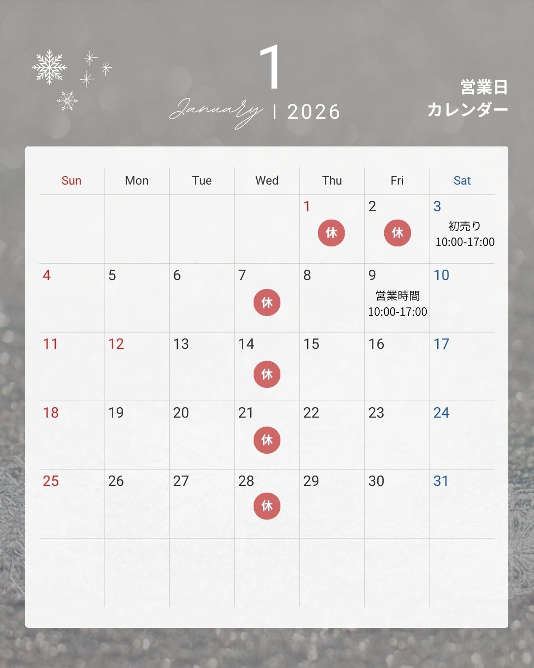 初売り 1月3日より 営業時間10:00-17:001月4日より通常営業 営業時間10:00-19:00